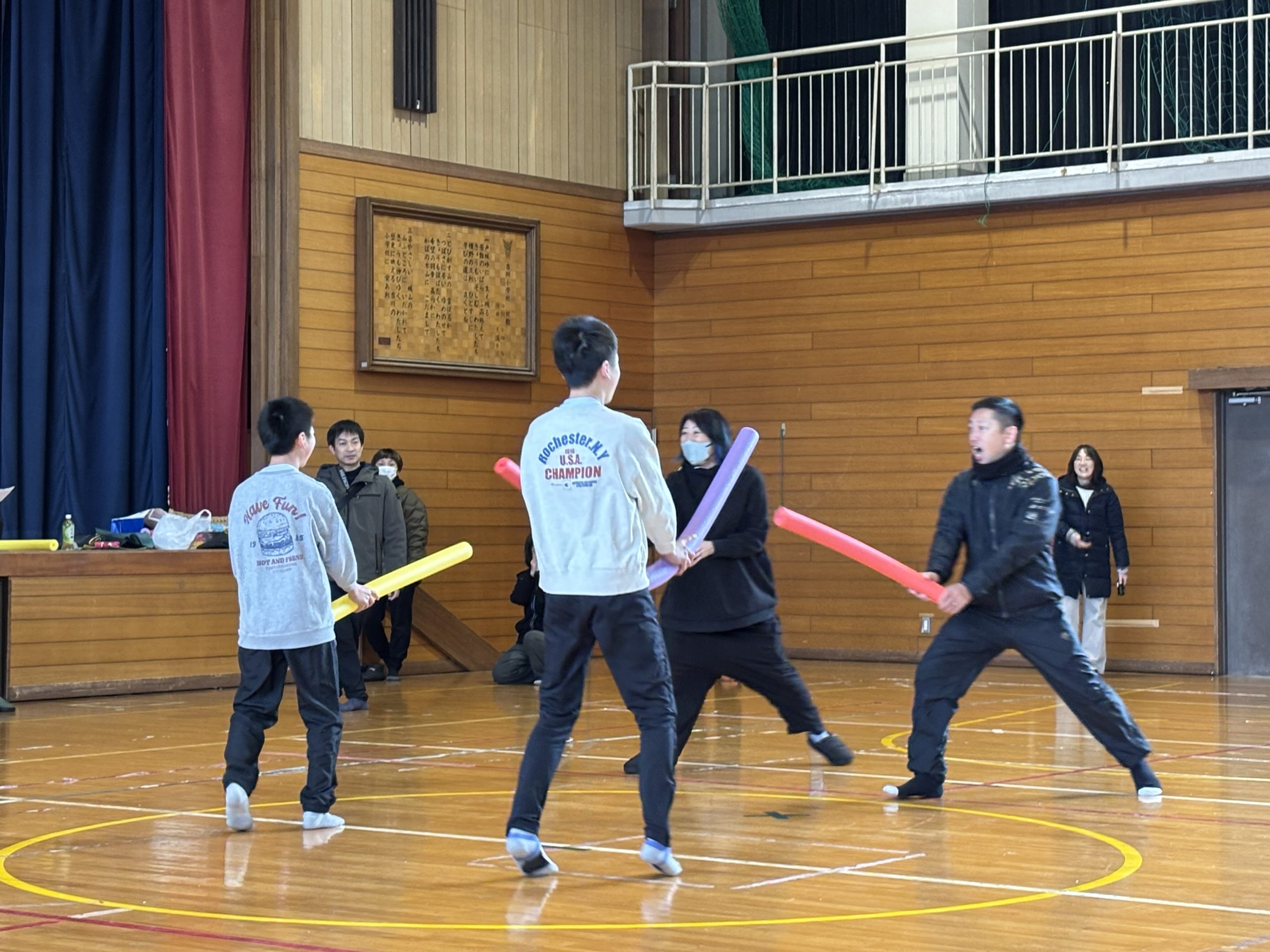 小学生以下⇨保護者とスポンジ棒で剣道対決!